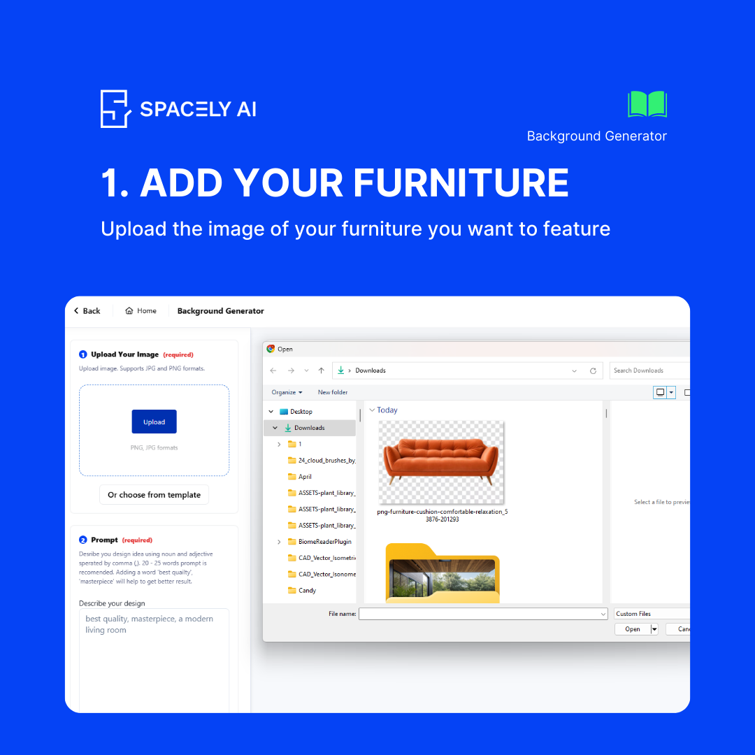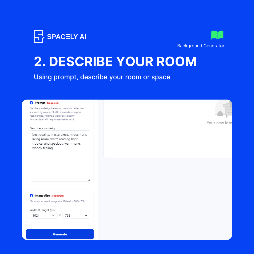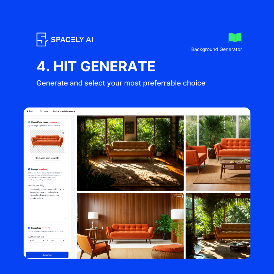 We are excited to unveil a fantastic new feature on Spacely AI that will revolutionize how you design and furnish your spaces. Now, you can effortlessly visualize and place furniture in your room based on the room type and style you select. Here’s how it works in just four simple steps: