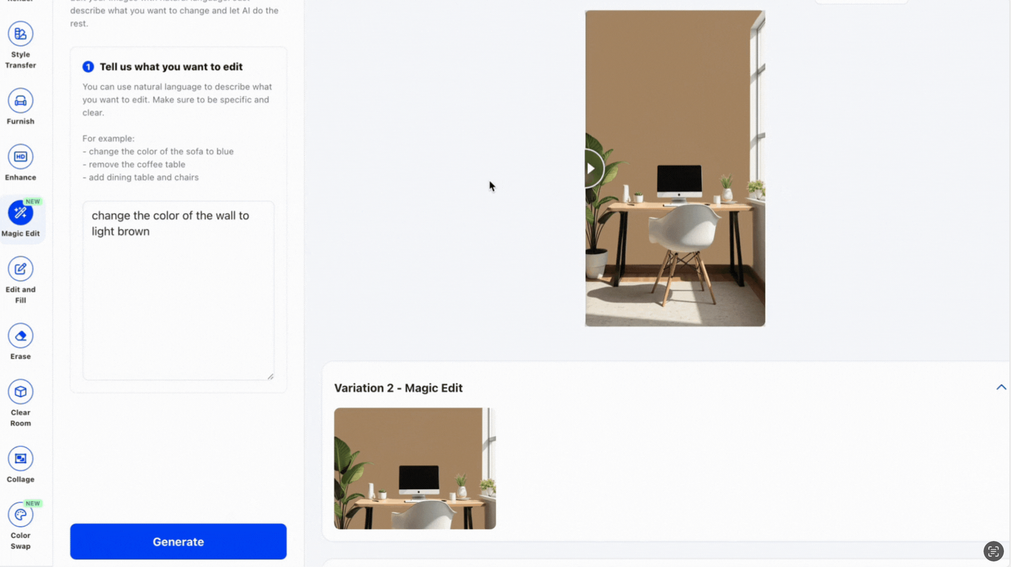 Magic Edit will instantly process your request and display the updated image.