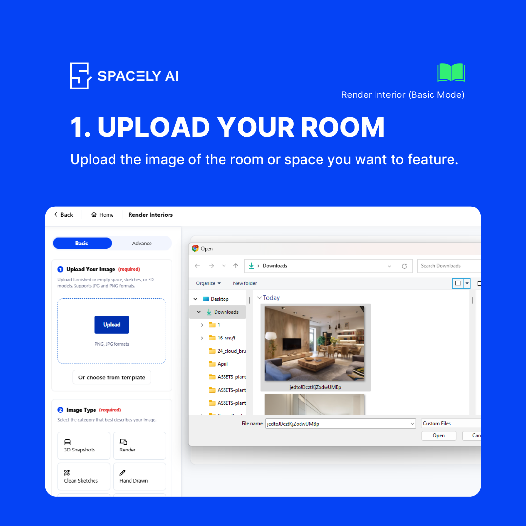 Welcome to the Spacely AI blog! Today, we’re excited to introduce our latest feature, Render Interiors, designed to transform any room into the style of your dreams. Whether you’re working with a real image, a sketch, or a 3D snapshot, Spacely AI makes it simple and effective. Here’s a step-by-step guide on how to use both the basic and advanced modes of this powerful tool.