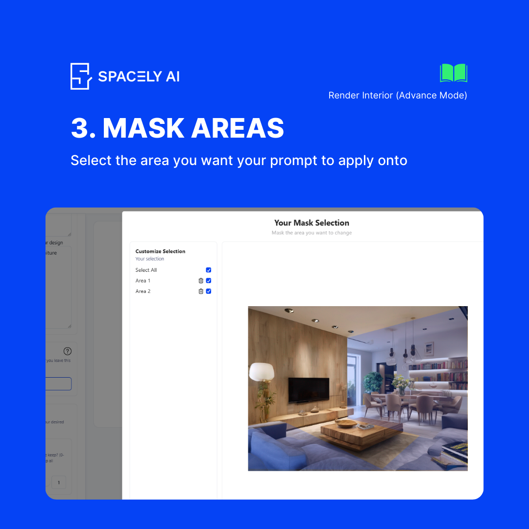 Mask the specific areas of the room where you want the style changes to apply. This allows you to keep certain parts of your room untouched.