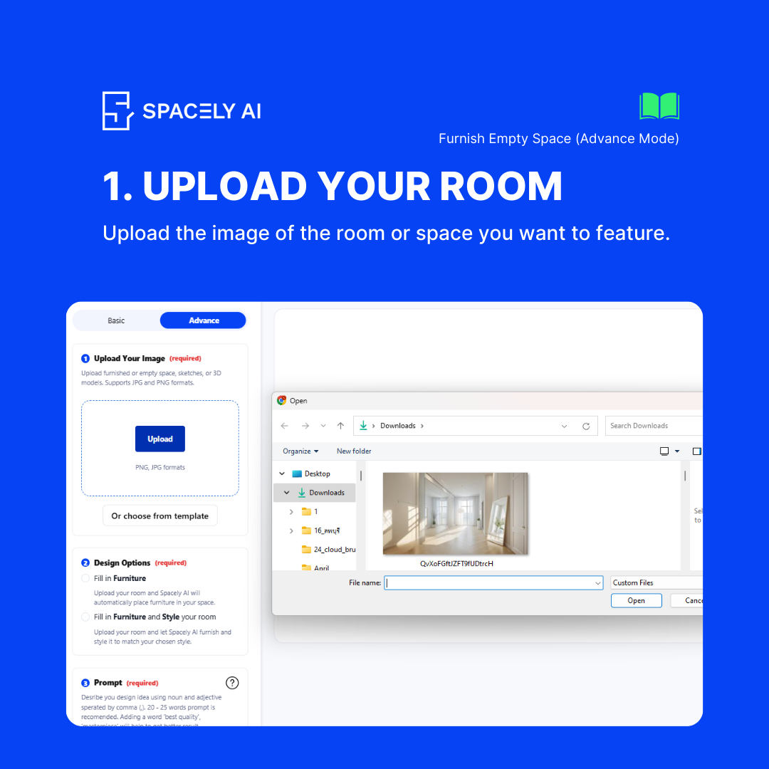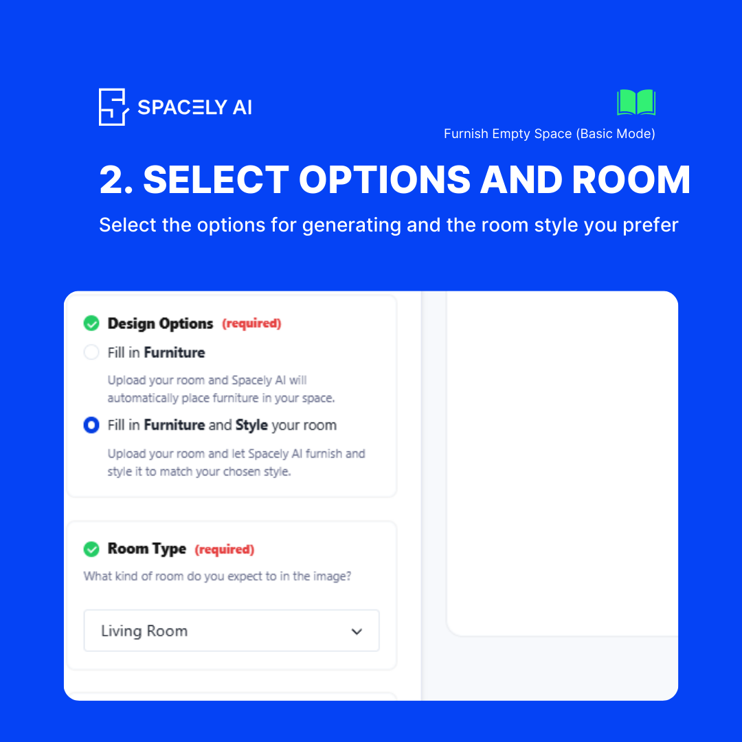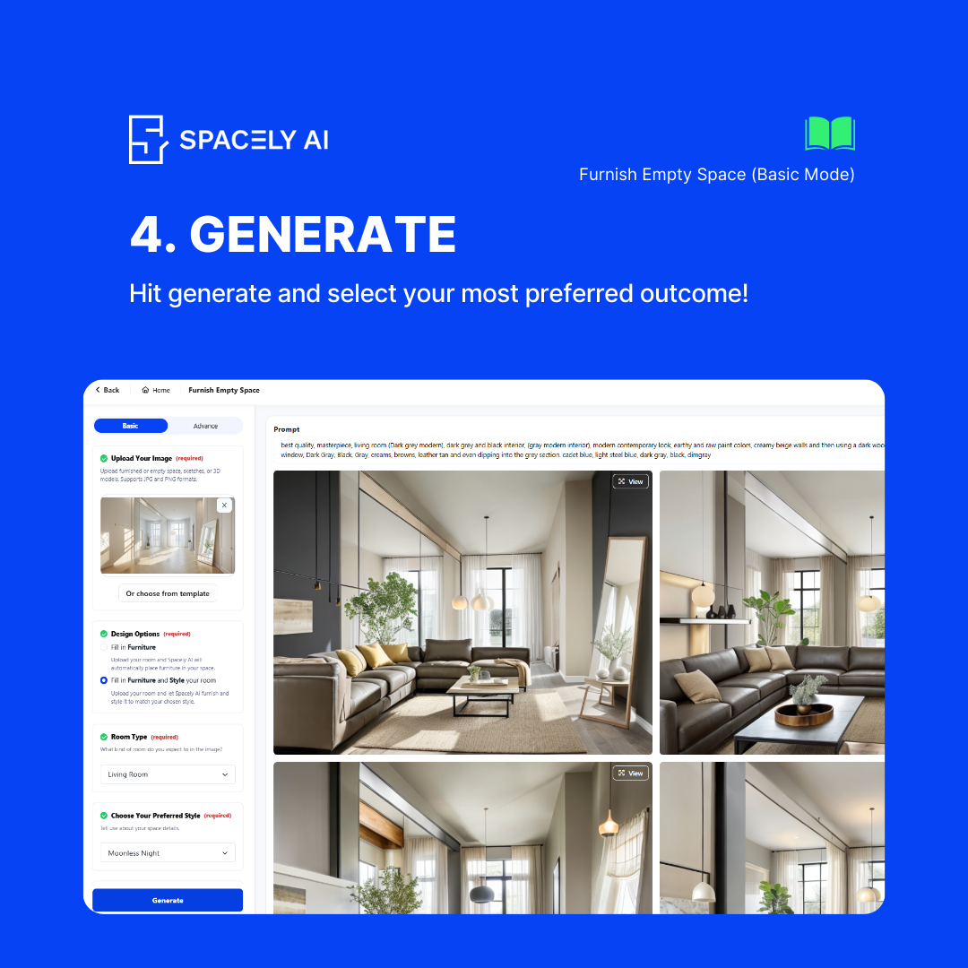 Welcome to the Spacely AI blog! Today, we’re showcasing the feature, Furnish Empty Space, designed to help you add furniture to your empty room effortlessly. Whether you have a blank canvas or want to refresh your room's style, this feature offers both simplicity and customization. Here's a comprehensive guide on how to use both the basic and advanced modes of this powerful tool.