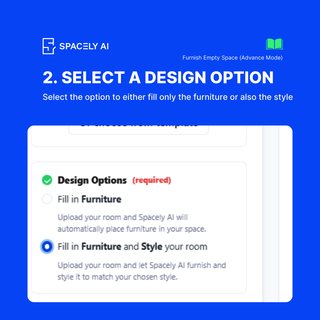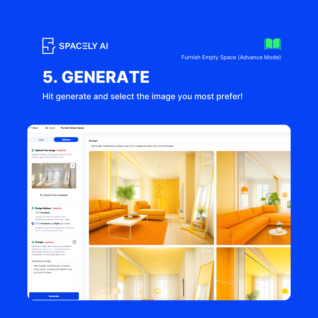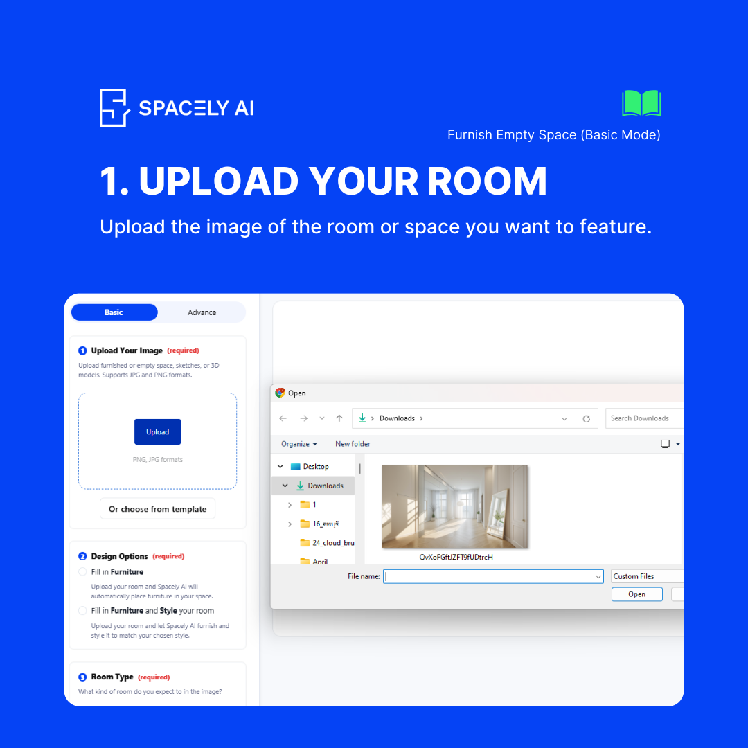 Welcome to the Spacely AI blog! Today, we’re showcasing the feature, Furnish Empty Space, designed to help you add furniture to your empty room effortlessly. Whether you have a blank canvas or want to refresh your room's style, this feature offers both simplicity and customization. Here's a comprehensive guide on how to use both the basic and advanced modes of this powerful tool.