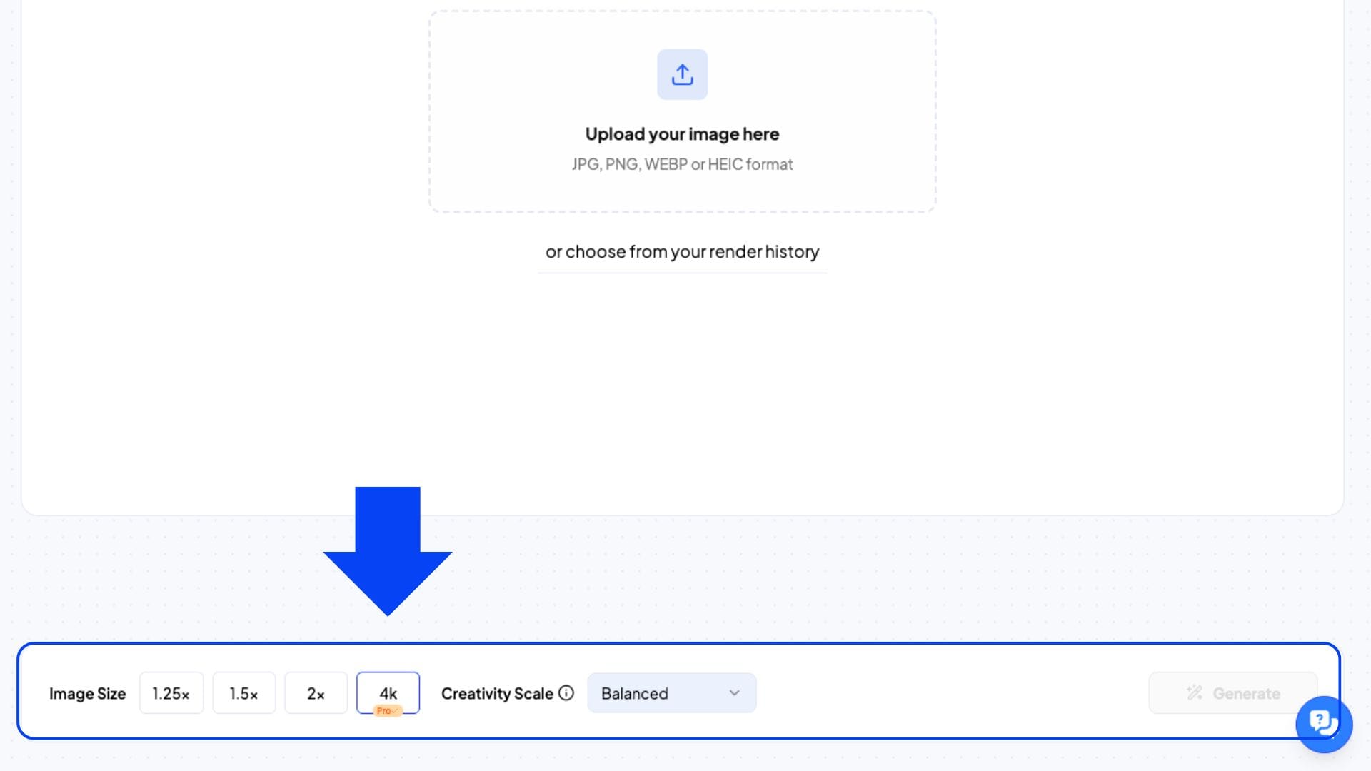 - Choose the 4K option: generate in 4K or upscale an existing image